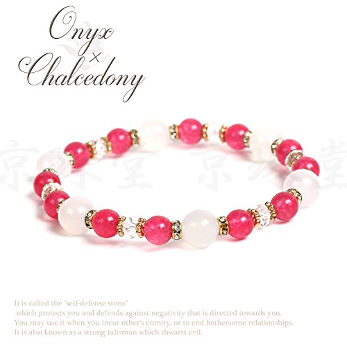 원본상품명: 【京珠堂】AAA ホワイトオニキス×濃いピンクカルセドニ? 8mm パワ?スト?ン ブレスレット