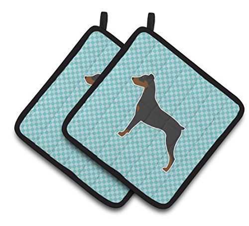 Caroline's Treasures German Pinscher Checkerboard Blue Pair of Pot Holders BB3713PTHD, 7.5HX7.5W, Multicolor