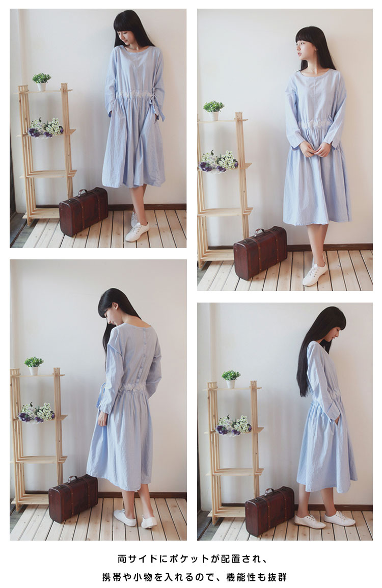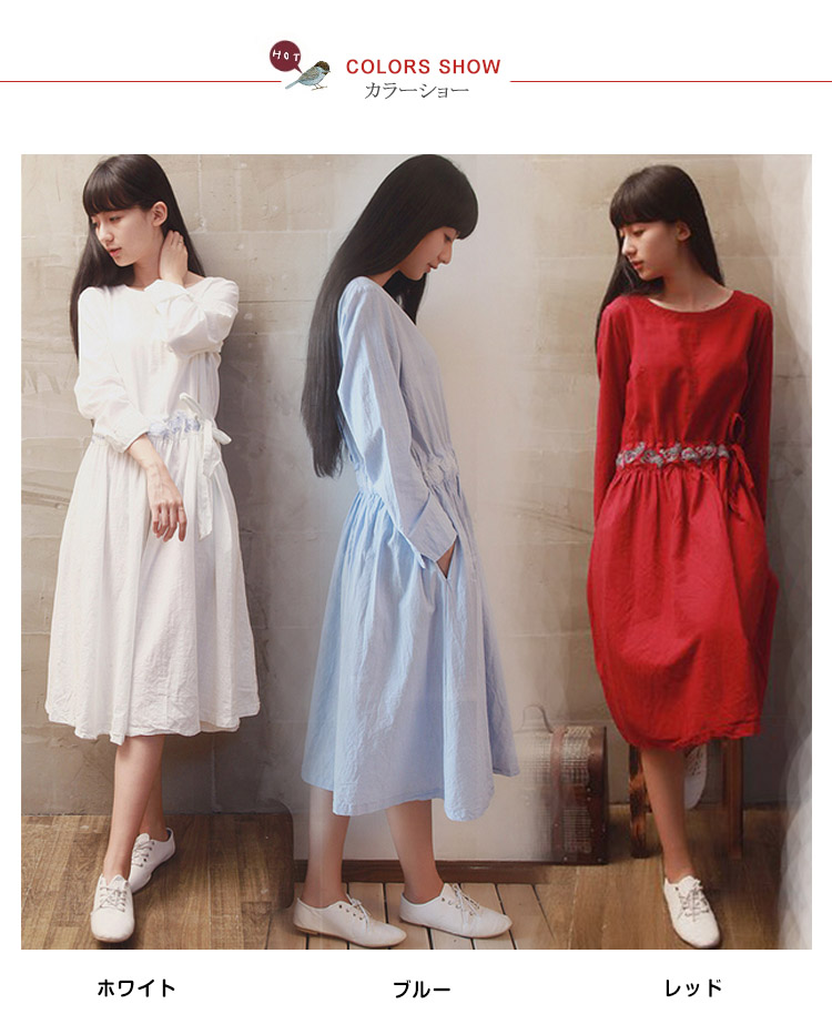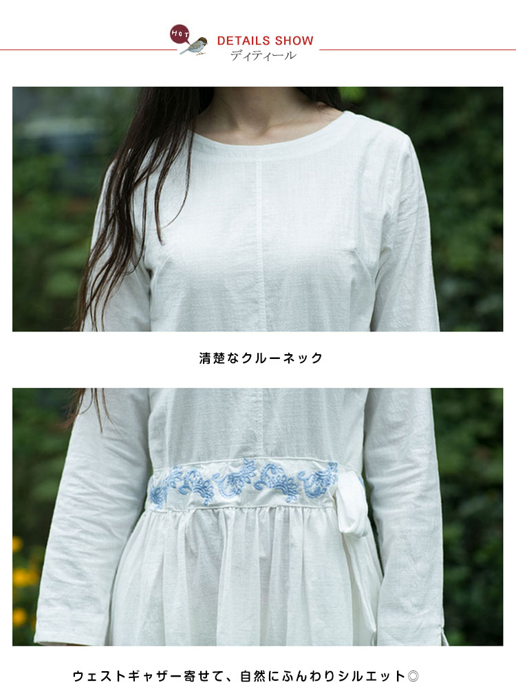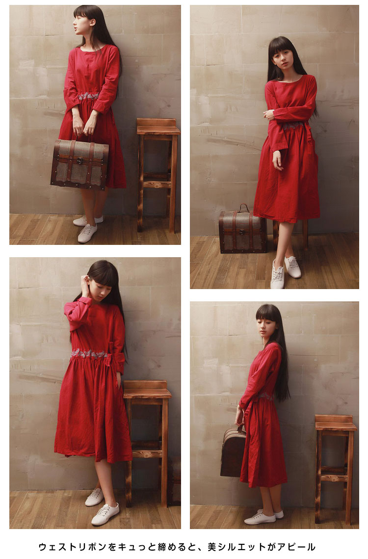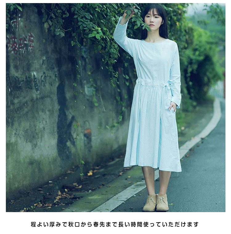 | ゆったりシルエットがこなれ感を演出する長袖ワンピースウェストに繊細な刺繍があしらわれていて、エスニック雰囲気が漂う両サイドにポケットが配置され、携帯や小物を入れるので、機能性も抜群ウェストリボンをキュっと締めると、美シルエットがアピール程よい厚みで秋口から春先まで長い時間使っていただけます | |