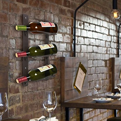 - Feature : Modern minimalist wall mounted brown metal wine wire rack. / Durable metal construction with 3 individual spaces to horizontally store bottles of wine. / Perfect as a thoughtful gift for wine-enthusiasts. / **Official MyGift® product.** / Approximate Dimensions (in inches): 17 H x 10 L x 4 D.