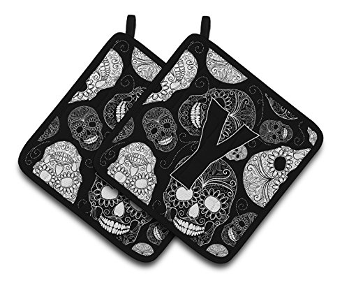 Caroline's Treasures Letter Y Day of The Dead Skulls black Pair of Pot Holders CJ2008-YPTHD, 7.5HX7.5W, Multicolor