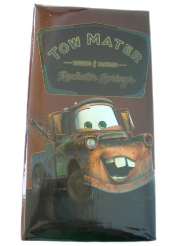 - Photo album features cover art of Tow Mater and Lightning McQueen