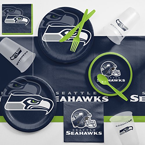 -. Feature : Each Seattle Seahawks Game Day Party Supplies Kit contains: 8 Seattle Seahawks 20 oz Plastic Cups, 16 Seattle Seahawks Luncheon Napkins, 8 Seattle Seahawks Dinner Plates, 8 Seattle Seahawks Luncheon Plates, 16 Seattle Seahawks Beverage Napkins, 1 Seattle Seahawks Plastic Tablecover, 24 Black Plastic Cutlery Pieces / 81 piece party supply kit / Serves 8 Seahawks' fans / Everything a Seattle Seahawks' fan needs for their football party