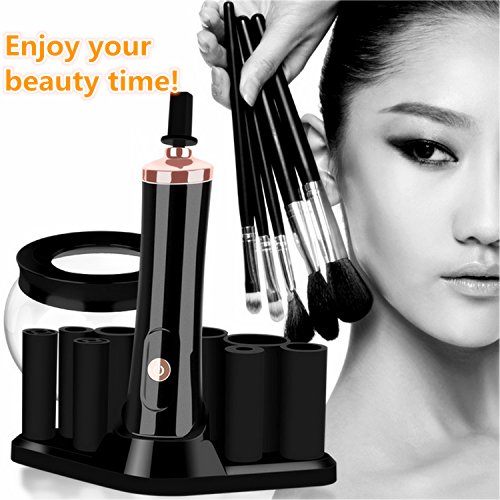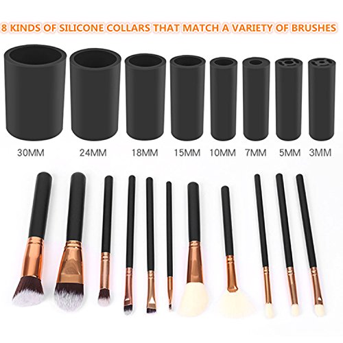 - SUIT FOR ALL SIZES - Our makeup brush cleaner tool includes 8 rubber holders, which can fit most makeup brushes perfectly, and won't fall off when they spin. A great makeup brush cleaner tool you deserve.