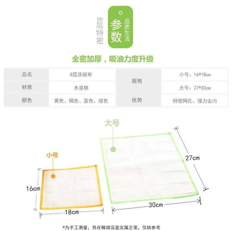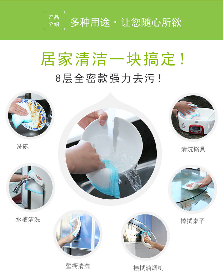 吸水8层棉纱特密加厚厨房不沾油洗碗布不掉毛洗碗巾清洁抹布大小