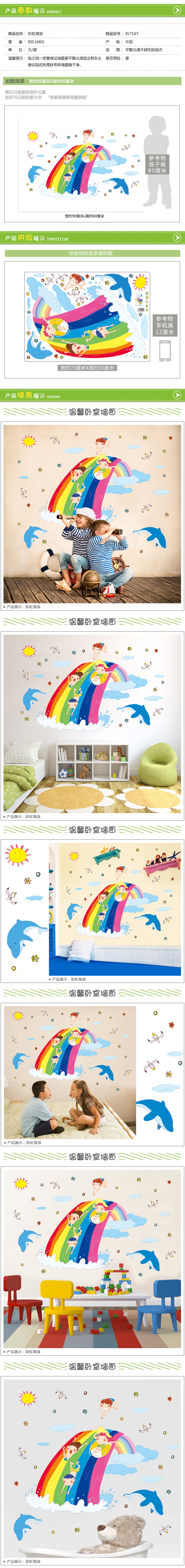 彩虹海浪儿童房墙贴自粘宝宝卧室墙壁贴纸墙上装饰墙纸贴画可移除