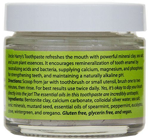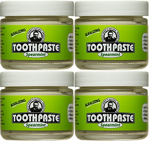Pack of 4 Uncle Harry's Fluoride Free Toothpaste - Spearmint (3 oz glass jar)