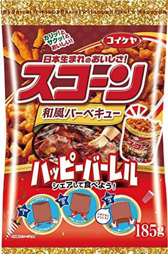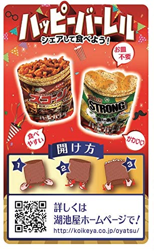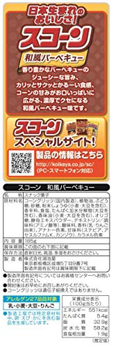 原材料:コーングリッツ(国内製造)、植物油、ぶどう糖、砂糖、粉末しょうゆ(小麦・大豆を含む)、香辛料、食塩、たんぱく加水分解物(大豆を含む)、香味油(小麦・大豆を含む)、オリゴ糖、酵母エキスパウダー、デキストリン/調味料(アミノ酸等)、酸味料、香料(乳・りんご由来)、アナトー色素、甘味料(ステビア、アセスルファムK、カンゾウ)、カラメル色素