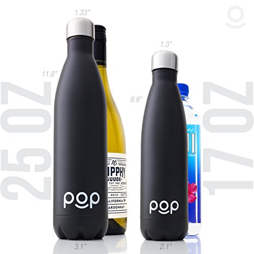 Stainless Steel Vacuum Insulated Water Bottle by POP Design | Keeps Cold 24hrs. or Hot for 12hrs. | Sweat & Leak-Proof | Narrow Mouth & BPA Free | 17 Oz (500ml) or 25 Oz (740ml) | 3 Colors