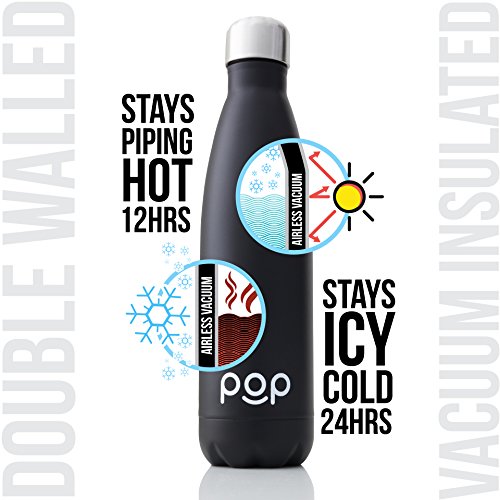 ALWAYS THE RIGHT TEMPERATURE: Your POP Design water bottle will keep your cold drinks cool and your hot drinks steaming! Our bottles feature a double layer vacuum insulation that will keep liquids cold for up to 24 hours and hot for up to 12 hours.