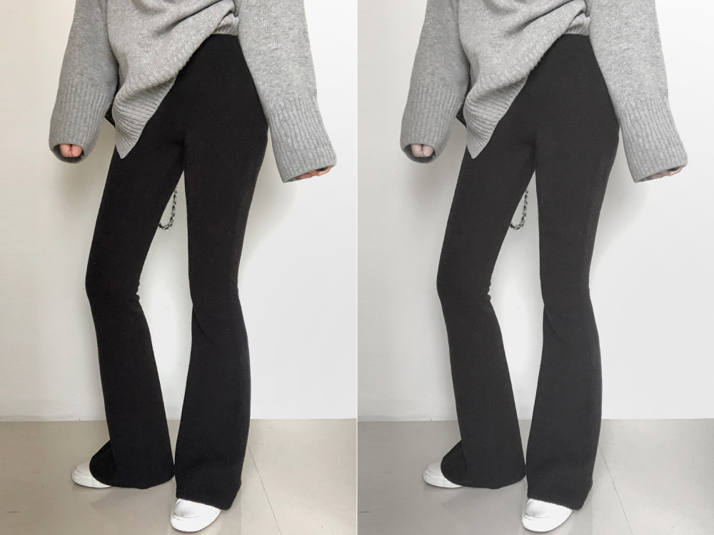 전체적으로 살짝 부츠컷 라인으로 떨어지는 팬츠로