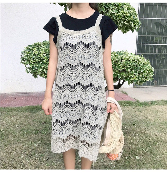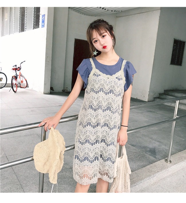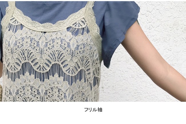 | サイズ | サイズ(cm): ワンピース 着丈84 バスト90 肩幅35 袖長10 キャミソール 着丈90 バスト90 |