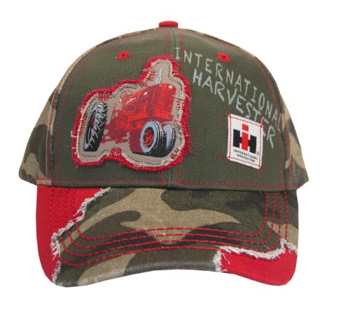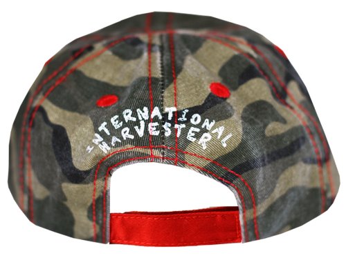 Binding : Apparel Product Description International Harvester Distressed Camo Cap. Washed Cotton camouflage with distressing material. Tractor patch and IH Applique on front. Red contrast stitching and eyelets with red twill reveals on brim. "International Harvester" screen printed on back with Red Velcro closure. 540Max Moisture Wicking sweatband. CNH Licensed product by 540Brands. 0