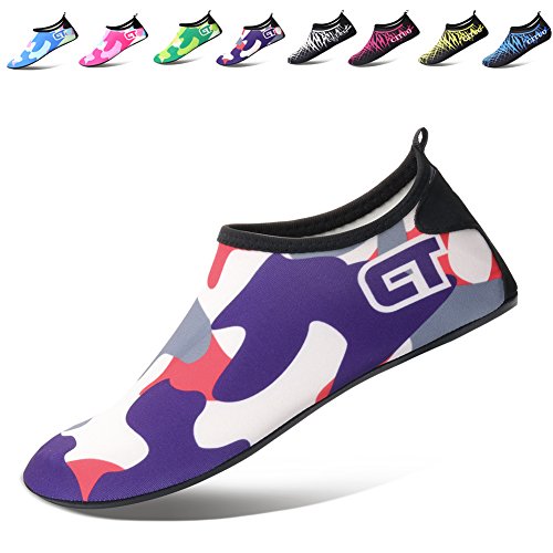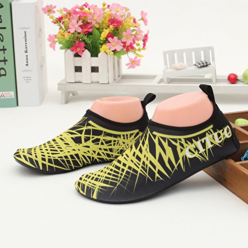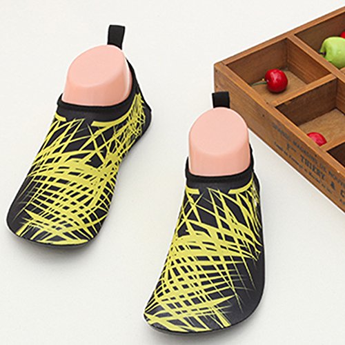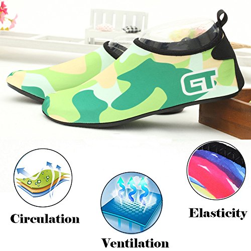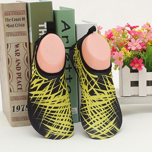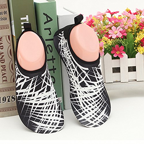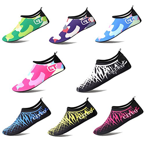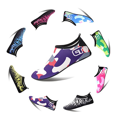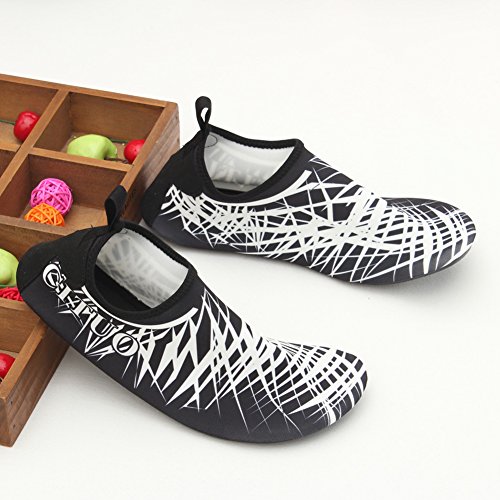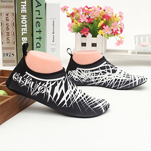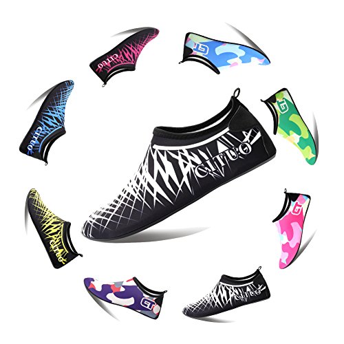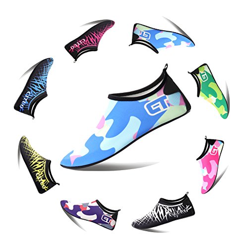 COMFORTABLE Our mutifunctional water Shoes are popular in water sports and feverishly loved by entertainment lovers. When you wear our water shoes sliding on the water, just like walking on land, smooth and flexible. CONVENIENCE Be ready for all your aquatic activities with these water shoes. Slip on easily and enjoy a barefoot feeling no matter what activity you do. A correct choice of wearing the aqua shoes in water sports or on hot beach. SIZE CHART FOR REFERENCE: