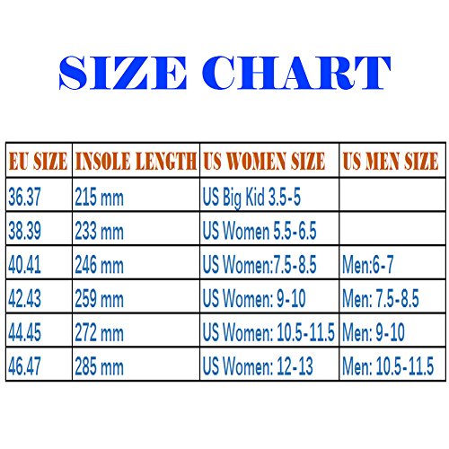 Insole Length: 21.5 cm -- US Big Kid 3.5-5 Insole Length: 23.3 cm -- US Women 5.5-6.5 Insole Length: 24.6 cm -- US Women:7.5-8.5 / Men:6-7 Insole Length: 25.9 cm -- US Women: 9-10 / Men: 7.5-8.5 Insole Length: 27.2 cm -- US Women: 10.5-11.5 / Men: 9-10 Insole Length: 28.5 cm -- US Women: 12-13 / Men: 10.5-11.5