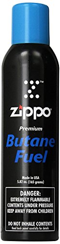 Studio : Zippo Manufacturing Company Publisher : Zippo Manufacturing Company Binding : Health and Beauty Product Description Features: Zippo butane. Fuel 5.82 ounce. 165 grams. Brand: Zippo. Universal tip fuels all leading butane lighters. Will not clog burner valves thus affecting flame height and function. 0