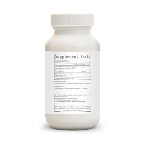 TURMERIC WITH BIOPERINE FOR HIGH ABSORPTION - We use patented BioPerine black pepper extract which has shown to be 2000x more effective at absorbing turmeric into the body than brands that do not have this. Just take 1 capsule in the morning before eating and that’s it for the day