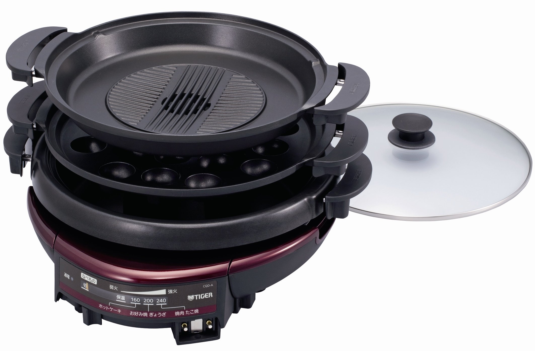 [Deep pan + corrugated corrugated plate + Takoyaki plate] Bordeaux brown CQD-A 120 TB