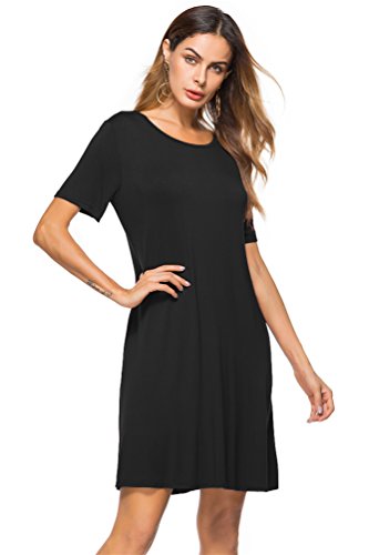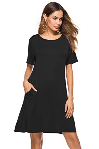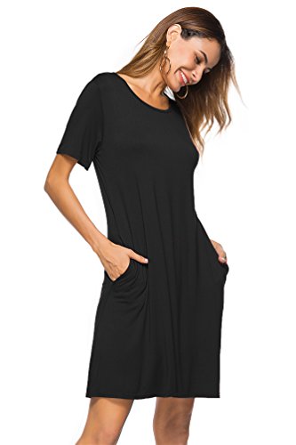 VOGRACE Women's Short Sleeve Loose T Shirt Dress Swing Dress With PocketsFabric: 65% Cotton/35% Polyester