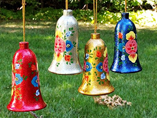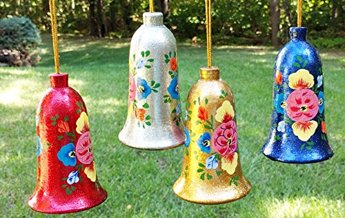 1 set consists of : 4 Hand painted Paper Mache Christmas Ornament Bells