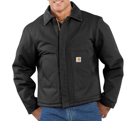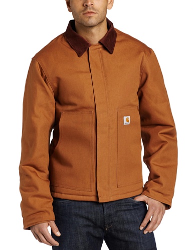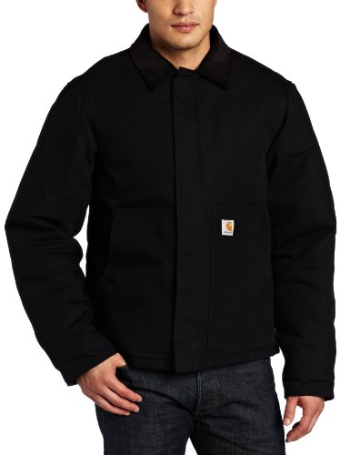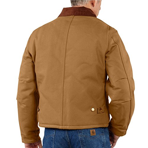 Studio : Carhartt Sportswear - Mens Publisher : Carhartt Sportswear - Mens Binding : Apparel Product Description Tested tough, our duck traditional jacket is built strong with 12-ounce, 100% ring-spun cotton duck and insulated with an arctic-weight quilted nylon polyester lining. The corduroy collar has under-collar snaps to accommodate an optional hood, and rib-knit storm cuffs provide added warmth. There are two deep hand-warmer pockets, and two convenient inside pockets. A split back along with pleated elbows enhances ease of movement. 0