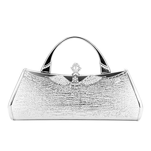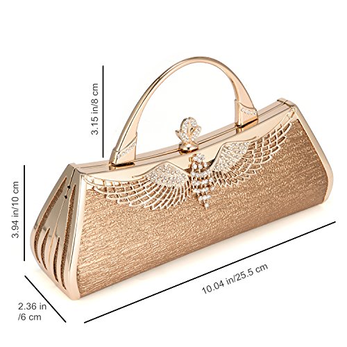 -. Feature : LUX DESIGN:Stylish shape and shiny exterior give this evening handbag a modern and exquisite look that will set you ahead of the pack in terms of style / AMPLE STORAGE:With enough storage for your cell phone(Can fit iPhone 6 well), lipstick, cash and credit cards, and other small items / DIMENSIONS:Approximate Dimensions:10"L X 2.4"W X 3.9"H (25.5cm X 6cm X 10cm), Chain Strap 47.24" (120cm), Handle:3.15 in/8cm / 2 WAY CARRYING:Removable hidden-clasp chain for your choice to take it in hand or on the shoulder / MULTIPLE USE:Perfect for weekend, wedding, evening party, prom or a night out.