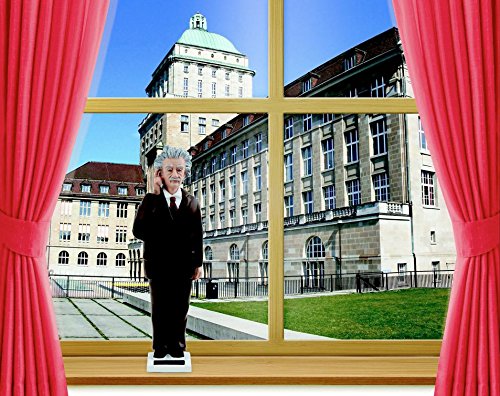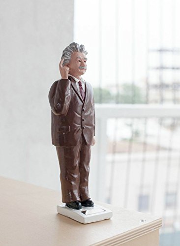 Einstein, with his fingers touching the temple when sunlight hits the solar panel.