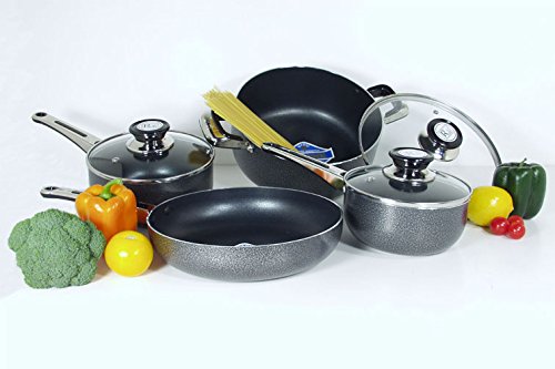 -. Title : Royal Cook Chateau Collection Heavy Gauge Aluminum Non-Stick 7 Piece Cookware Set, Grey