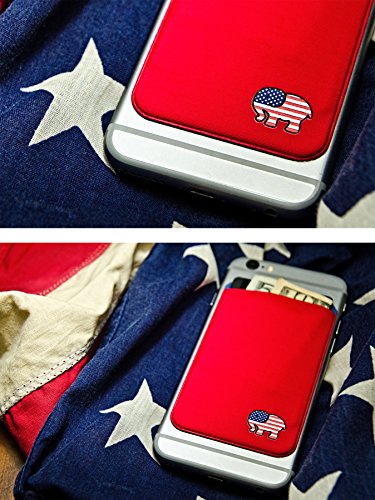 The Gecko Adhesive Card Wallet for Cell Phones, Ultra Slim & Custom Designed in Red for Repulicans