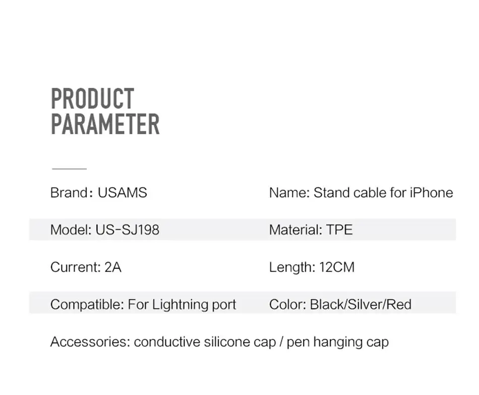 Feature 1:2A Charging Cable, Stand cable