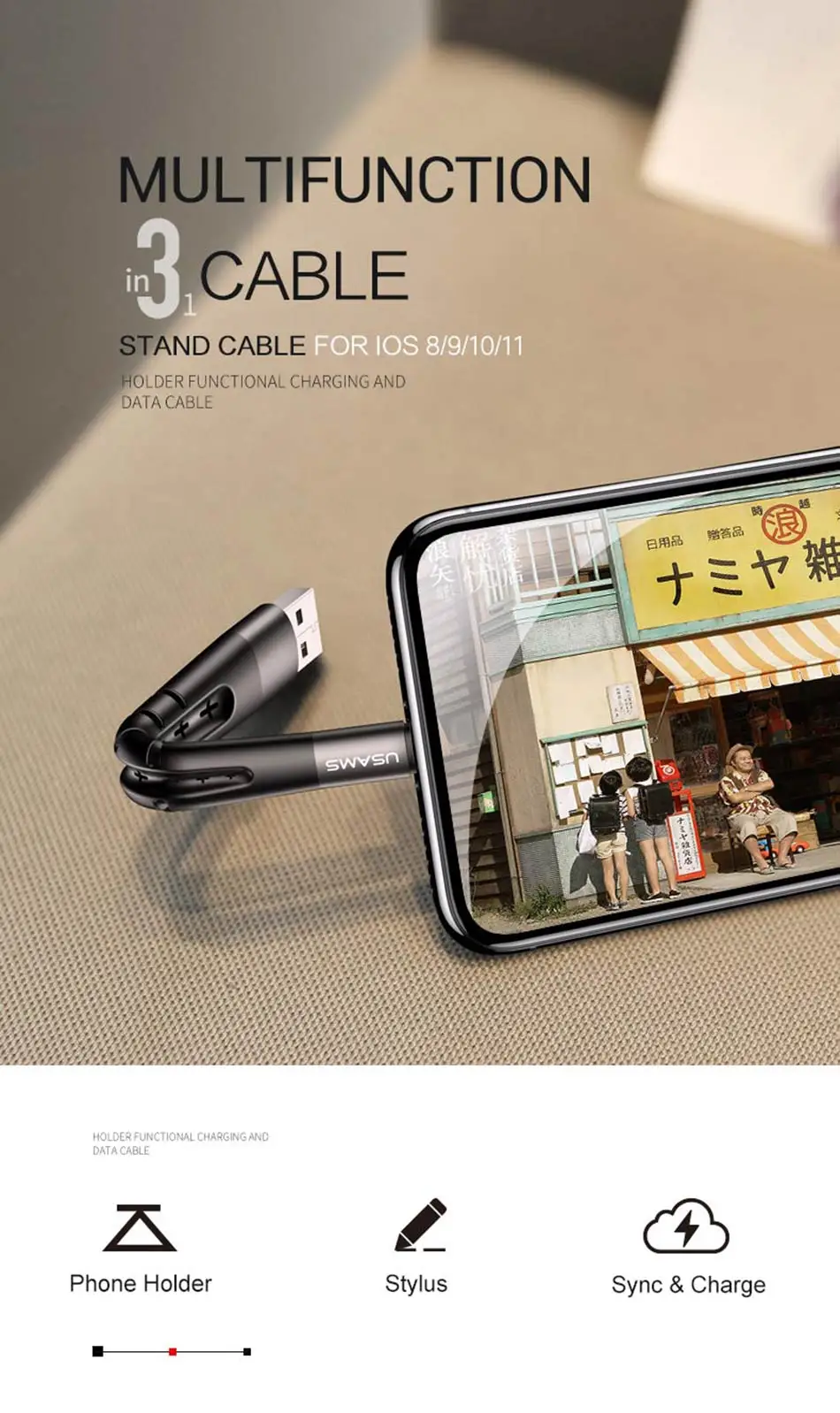 Feature 4:Usb cable for iOS 8/9/10/11