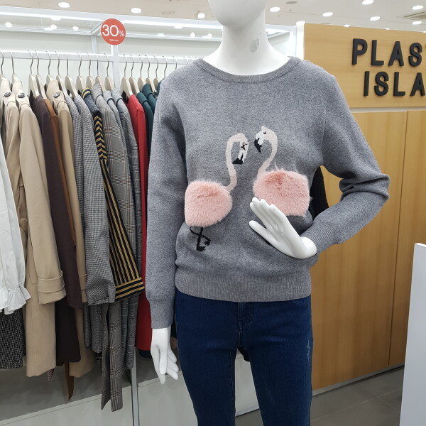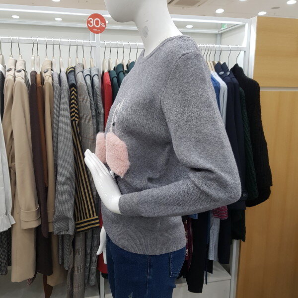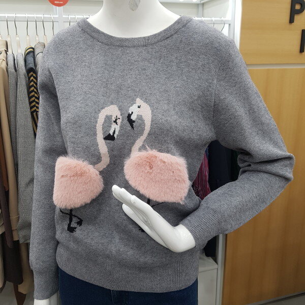 백조울라운드니트예요~앞부분에 백조 퍼가 달려있어서 귀여우면서 재밋는 니트예요