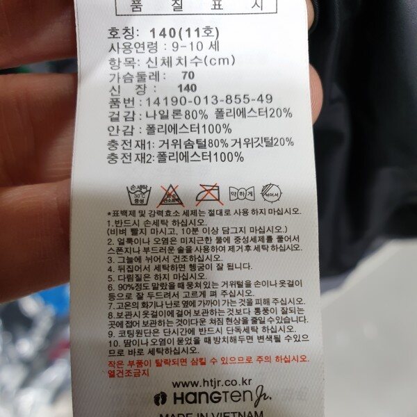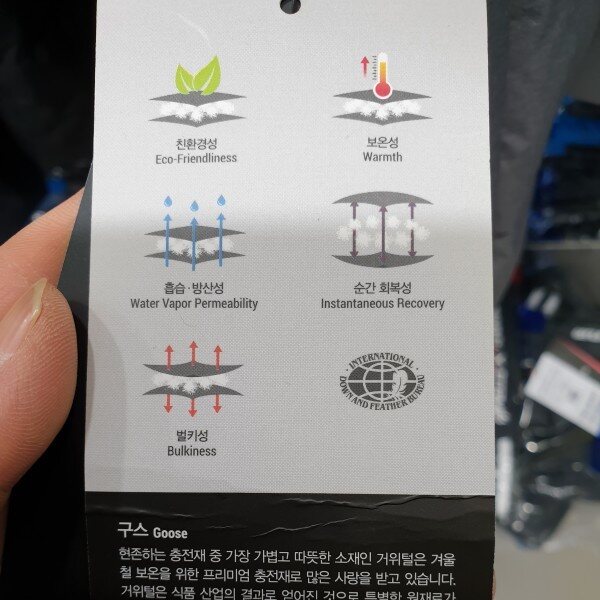 구스 솜털80%깃털80% 충전재로 가볍고 보온성 좋음