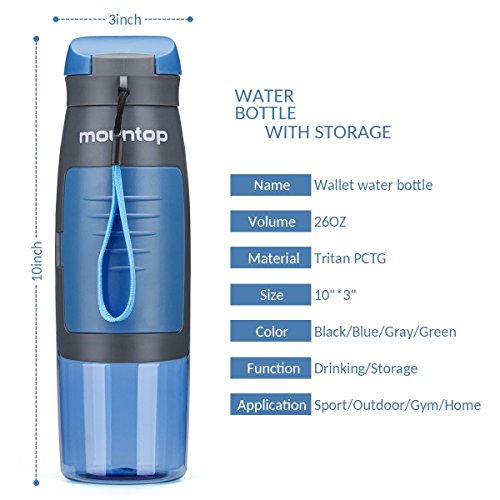 ✔STORAGE FUNCTION:mountop water bottle special storage function is the biggest selling point. Makes it easy to carry keys,cards,money,ect. So you don't have to find a pocket to store them separately when you go to the gym or go camping on the wild