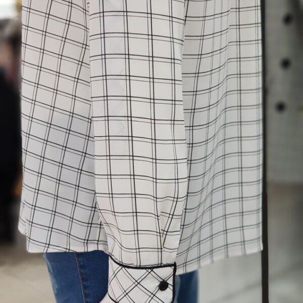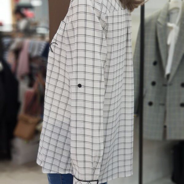 얇고 감좋은 구김없는 소재로 여름까지 가볍게 입기 좋은 상품입니다.베이직한 체크패턴으로 여성스러우면서 멋스러워 자켓 안 이너로 활용하기 좋아요.롤업 버튼이 있어서 소매 롤업 시 보다 깔끔한 핏을 만들 수 있어요.