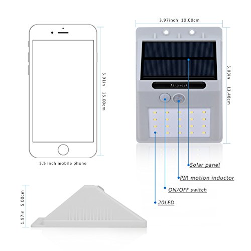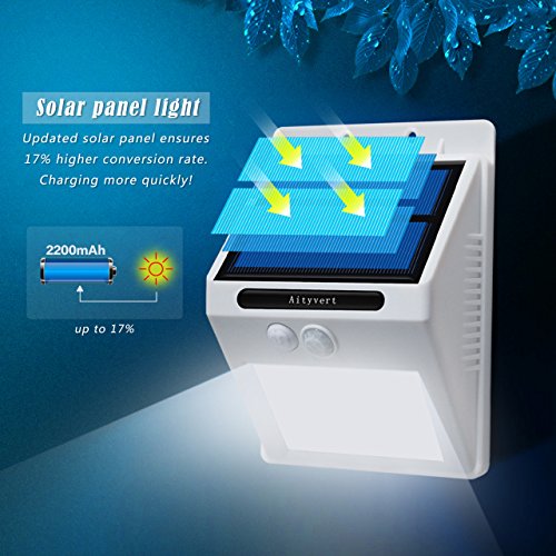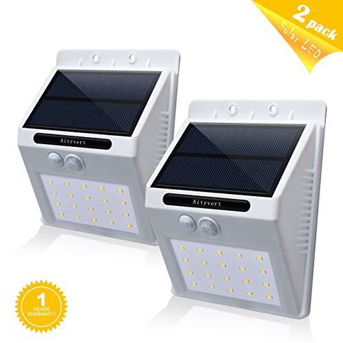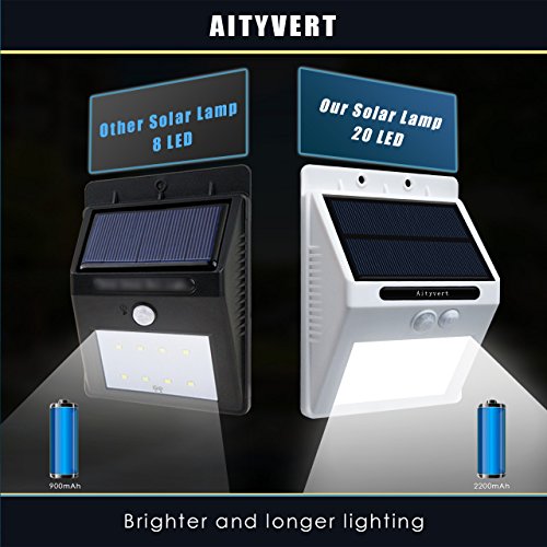 Solar Motion Lights, Outdoor Bright 20LEDs Solar Powered Auto ON/OFF With Wireless Motion Sensor Waterproof Security Wall Light for Garden Patio Deck Yard Path Driveway Stairs by Aityver(2Pack, White)
