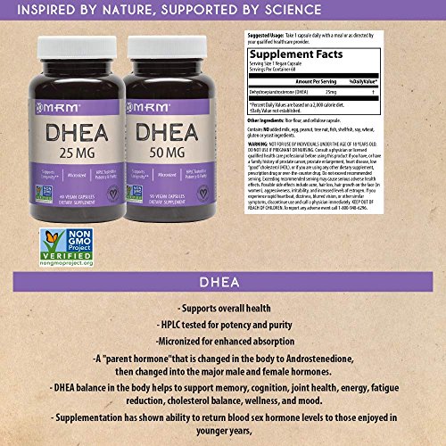 Studio : MRM Publisher : MRM Binding : Health and Beauty Product Description Promote balanced hormone levels with Natrol® DHEA. A hormone naturally found in the body that declines with age, DHEA converts itself into estrogen and testosterone. Natrol® DHEA may help support overall health and may help promote healthy aging. DHEA is an important base from which other key metabolites are derived. Amounts of DHEA decrease as we grow older. This Natrol product contains the highest quality DHEA available in a supplement form. Secretion of DHEA from the adrenal cortex is very high in a fetus, drops sharply after birth to very low levels in childhood, rises again before puberty and reaches peak levels in young adulthood. 0