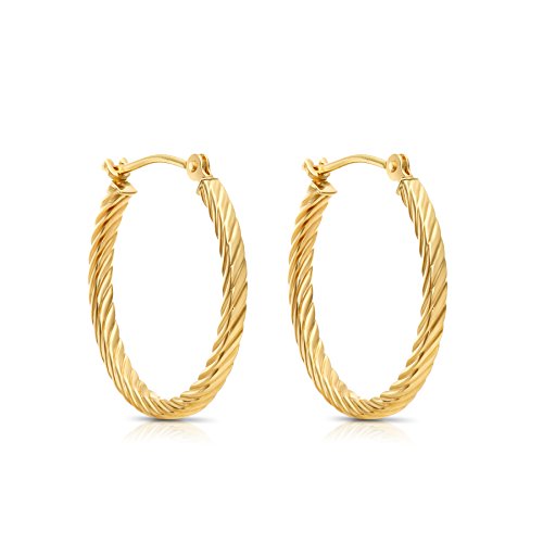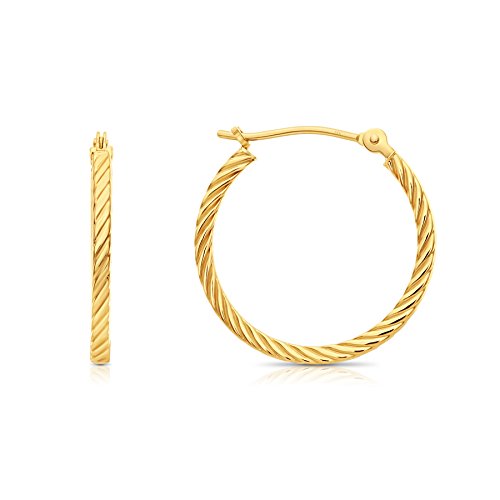 14k Yellow Gold Twisted Square Tube Hoop Earrings
