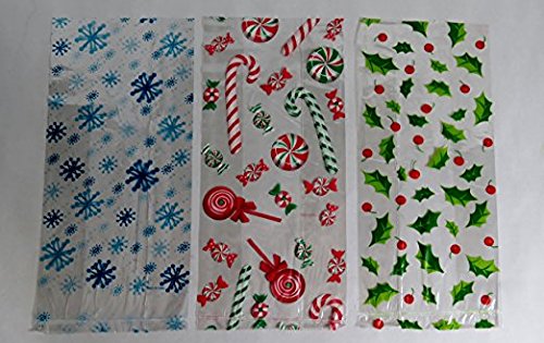 75 Christmas Treat Bags with Twist Ties - Cellophane Bags