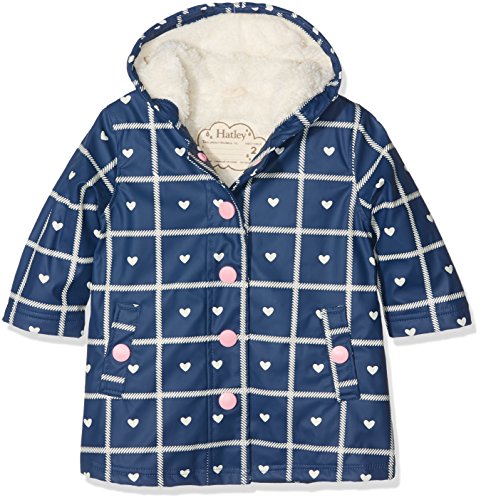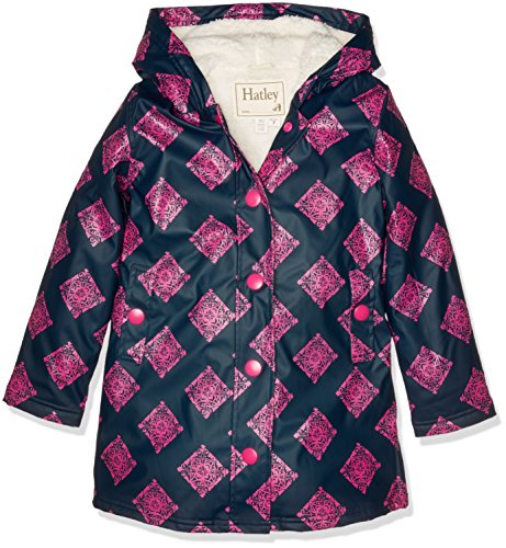 Hatley Little Girls' Sherpa Lined Splash Jacket, Pink Diamonds on Navy, 6