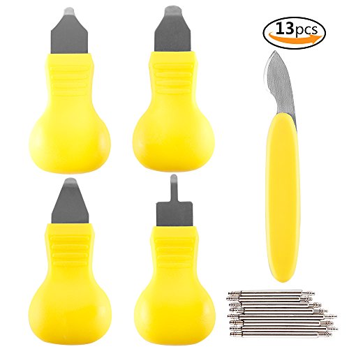Watch Back Case Opener Remover Removal Knife Repair Tool Different Sizes 5pcs, Teenitor Watch Battery Removal Change Stainless Steel Watch Back Case Opener & 8 Extra Watch Pins, Yellow, 13pcs