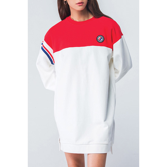 - 레드 컬러 배색으로 산뜻한 포인트를 주었으며 소매 부분