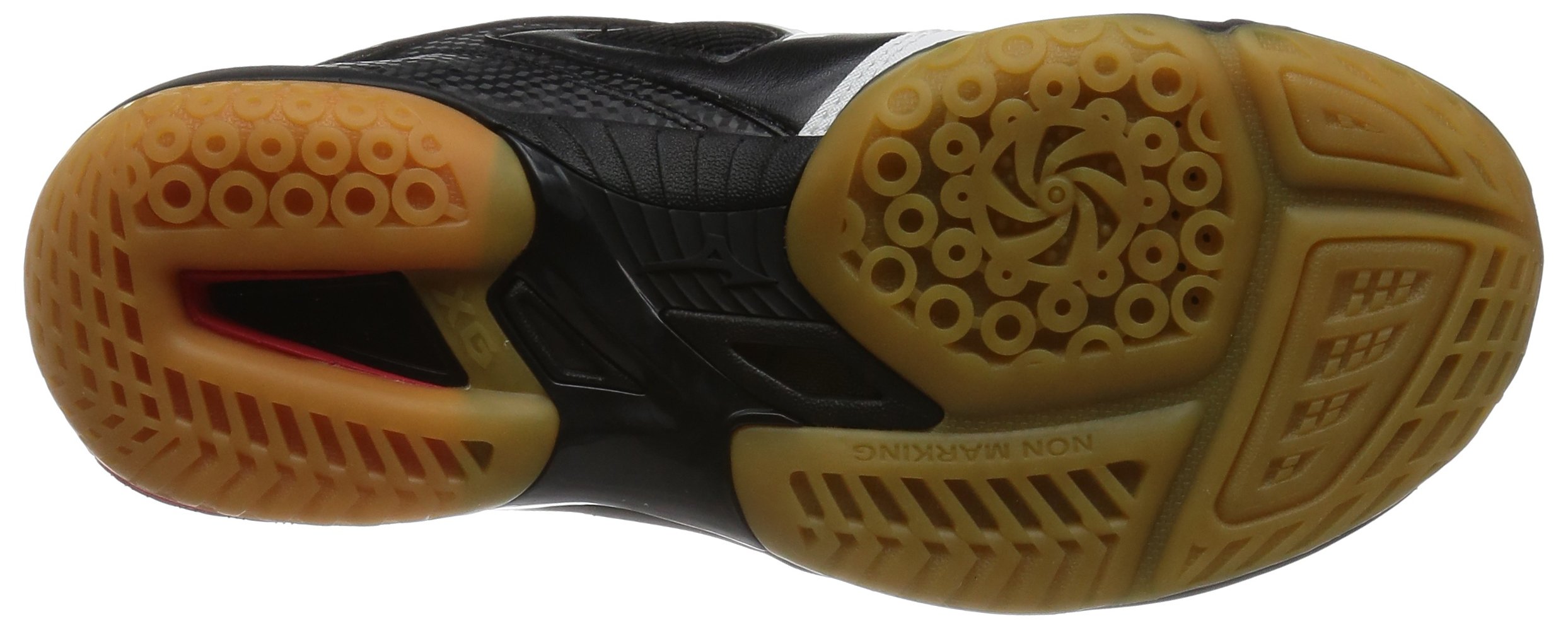 · Speedy movement, extra grade rubber which exerts power in intense movement, XG rubber.