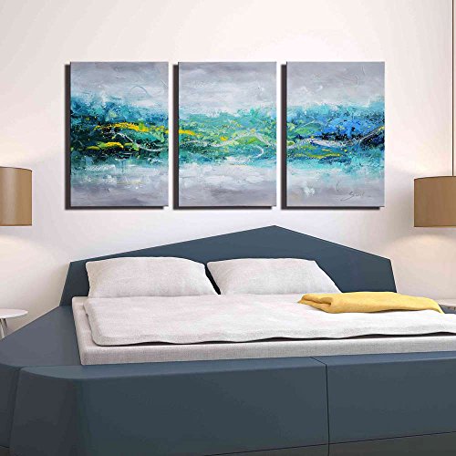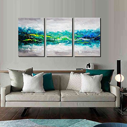 -. Title : ARTLAND Hand Painted 24x48-inch 'Blue Love of Life' 3-piece Gallery-wrapped Abstract Oil Painting on Canvas Wall Art Set