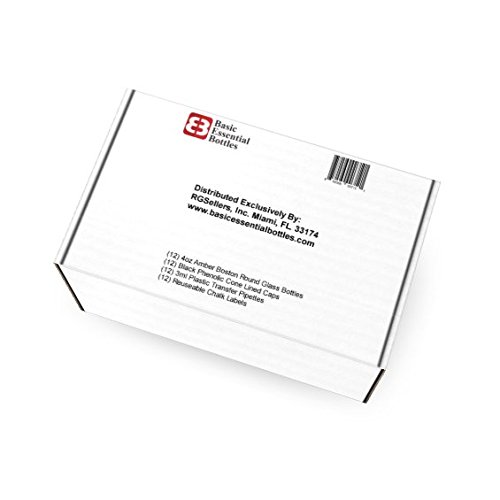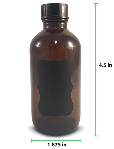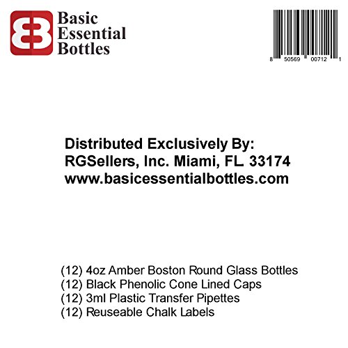 (12) 4 Ounce 4 oz Empty Amber Boston Round Glass Bottles with Black Phenolic Cone Lined Caps (12) 3ml Pipettes (12) Chalk Labels for Essential Oils,...