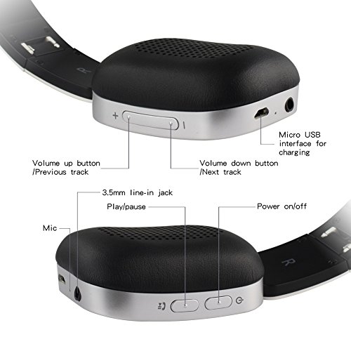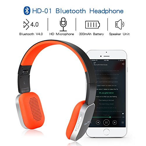 Kingyou On-Ear Bluetooth Kopfhorer Faltbare Drahtlose Stereo Headset mit Mikrofon und Wired Modus fur iPhone, iPad, iPod, Android smartphone, Laptop und MP3-Player