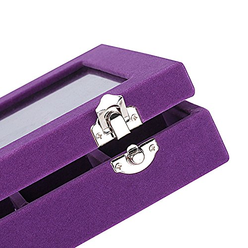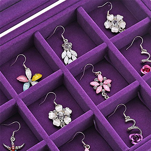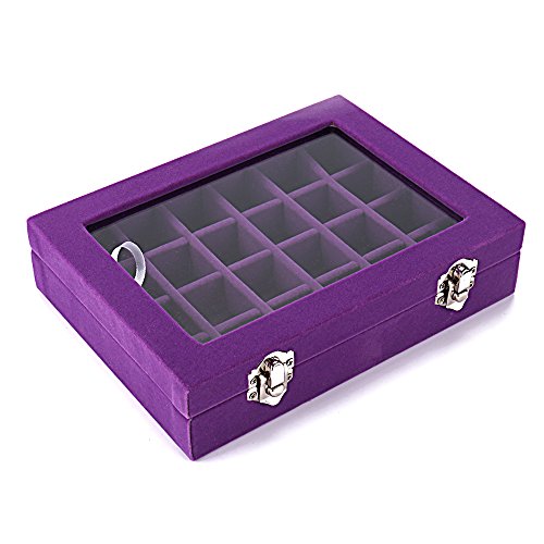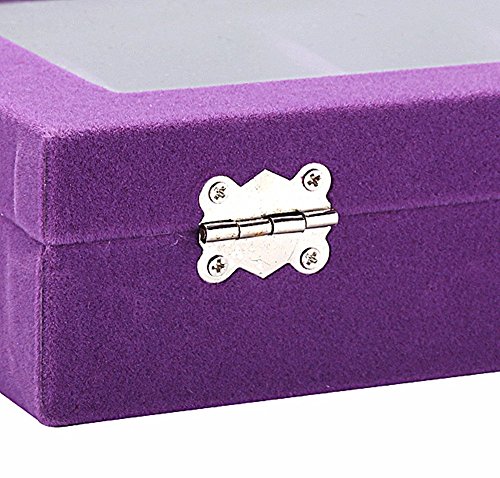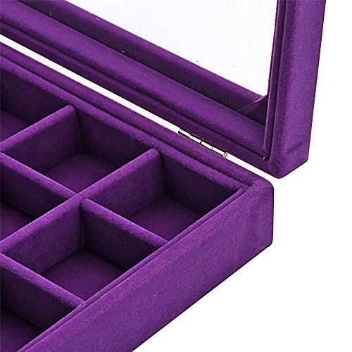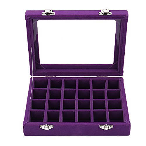 Sky Piea 24 Grid Velvet Glass Jewelry Box Jewellery Organiser Earring Ring Storage Holder Case Box (Purple)