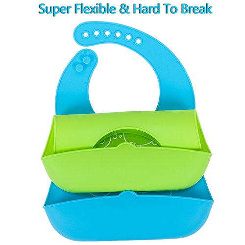 -. Title : Baby Bibs 4 Pack, 2 Silicone Bibs With Pocket & 2 Organic Cotton Soft Drool Bibs