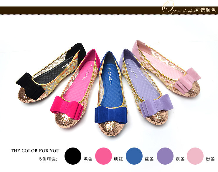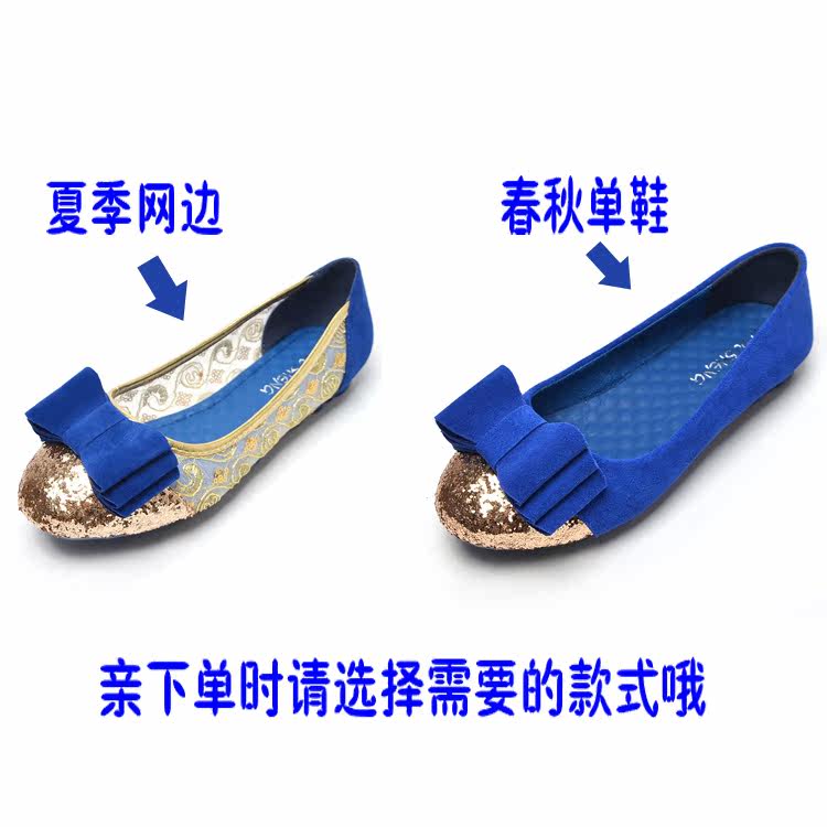 2014大码真皮网纱浅口蝴蝶结