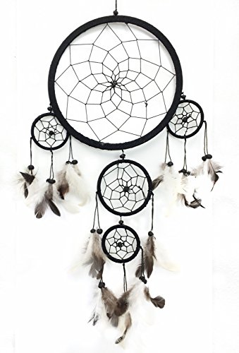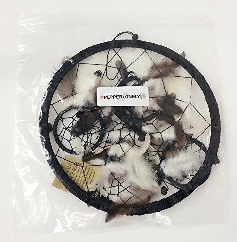 PEPPERLONELY Black and White Feathers Dream Catcher 8.5 Inch Diameter, 25 Inch Long